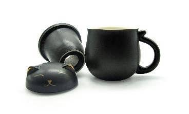 Lucky Cat Mug w/Strainer & Lid - Black