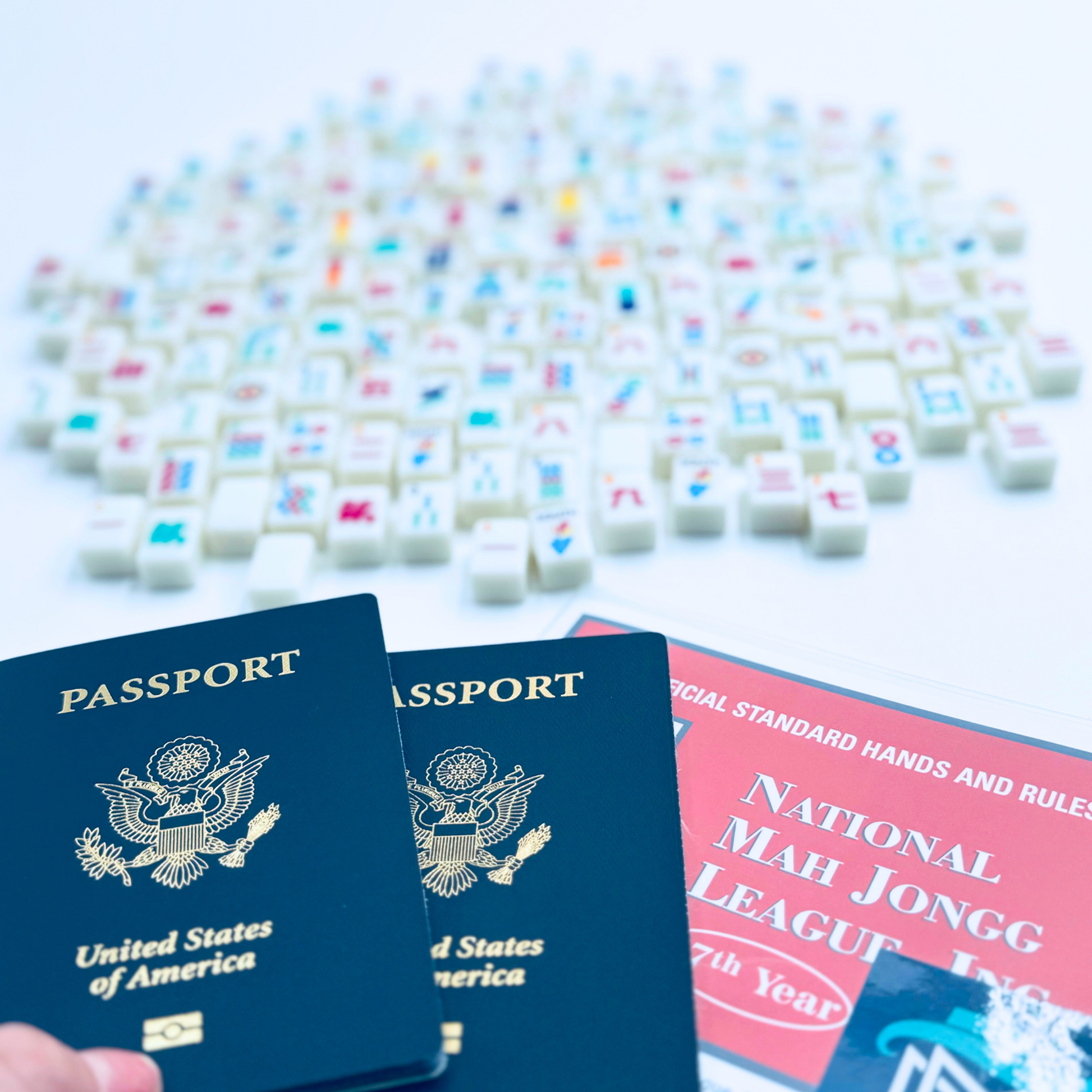 -160 Tiles (tile dimensions: 0.8 x 0.5 x 0.4"): 36 Dots, 36 Bams, 36 Cracks, 12 Dragons (4 Red, 4 green, 4 white/soap), 16 Winds (4 North, 4 East, 4 South, 4 West), 8 Flowers, 10 Jokers- all in the TRAVEL theme, 6 Blanks
