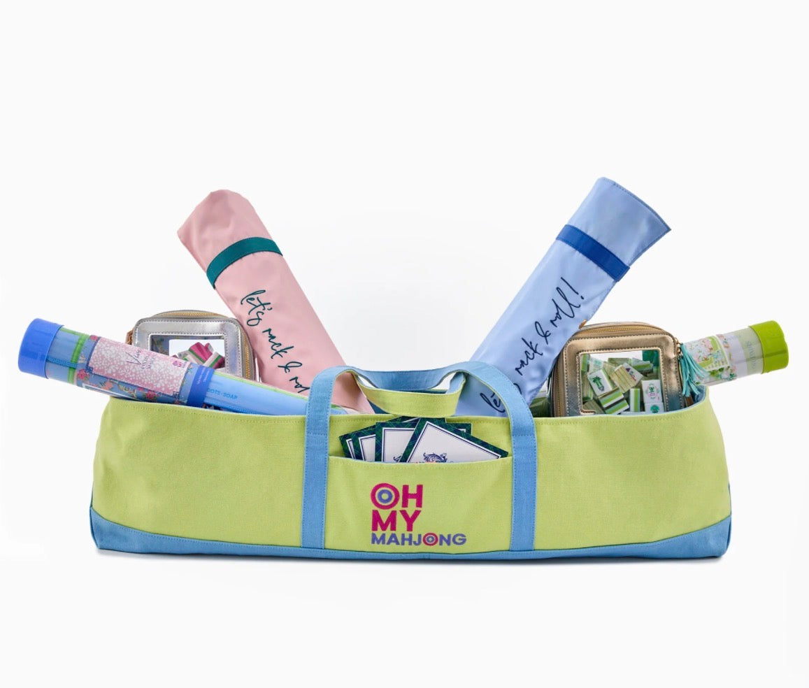 Meet your new Mahjong must-have! This canvas Mat Storage Bag is designed to keep all your Mahjong essentials organized while adding a touch of style to your teaching or game night.
