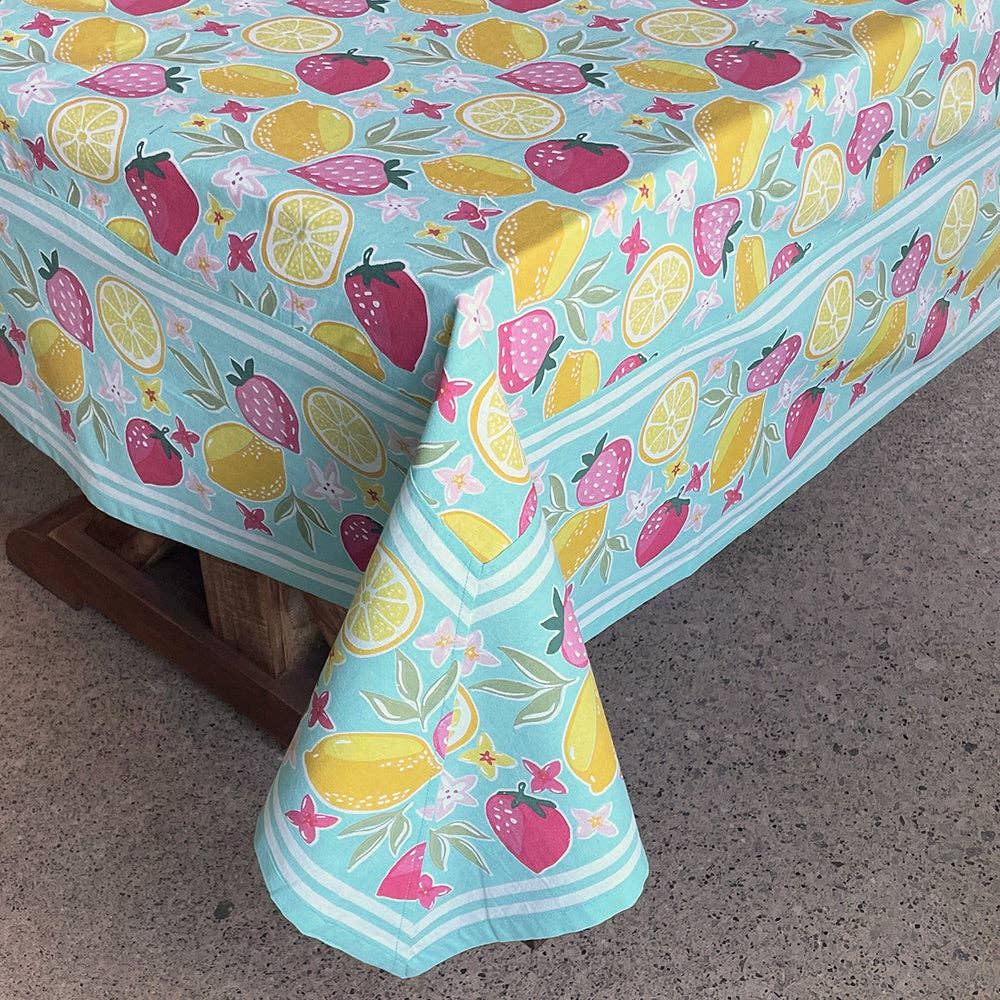 Hand screen printed tablecloth. * 100% Cotton. Machine washable. Low heat tumble dry.
