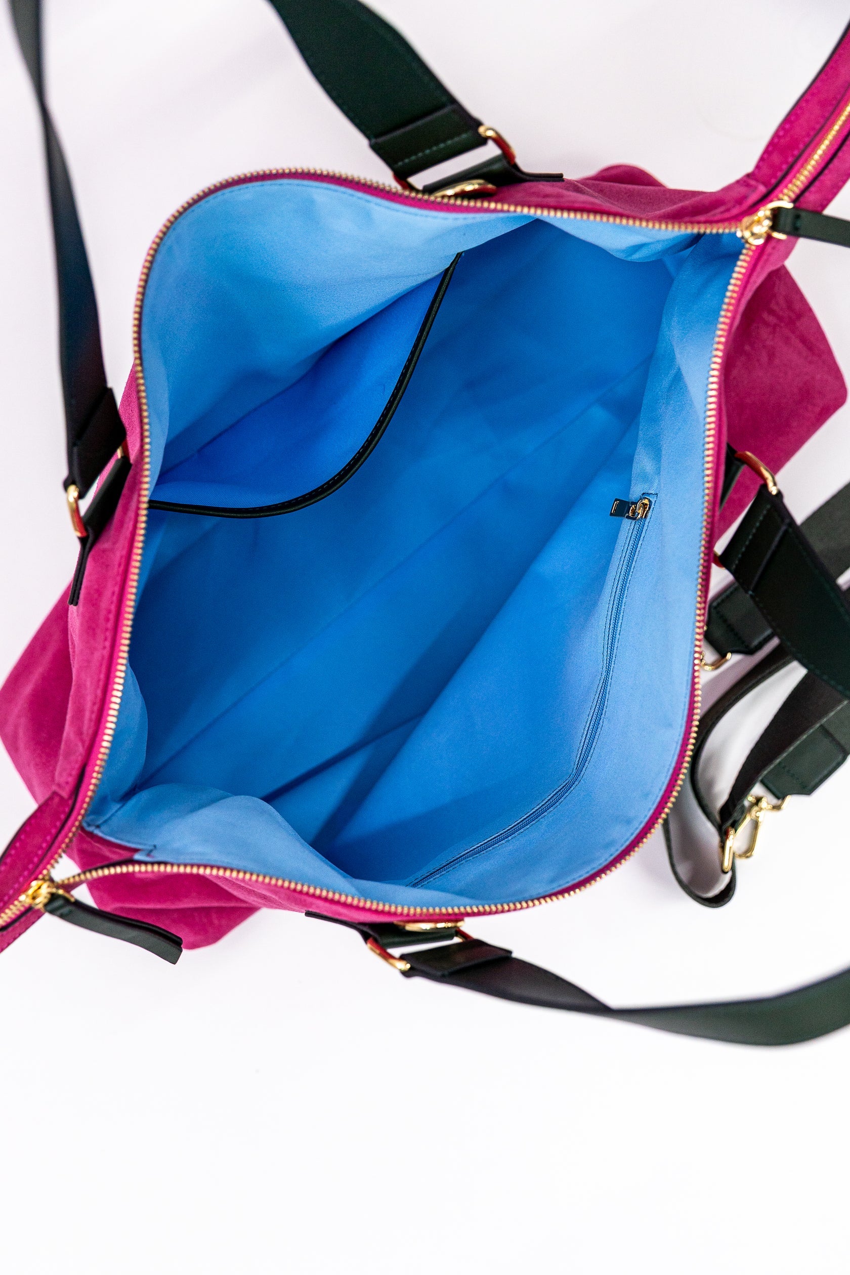 Suede Carryall Bag Bright Pink/Olive Green- Bam Bird Boutique