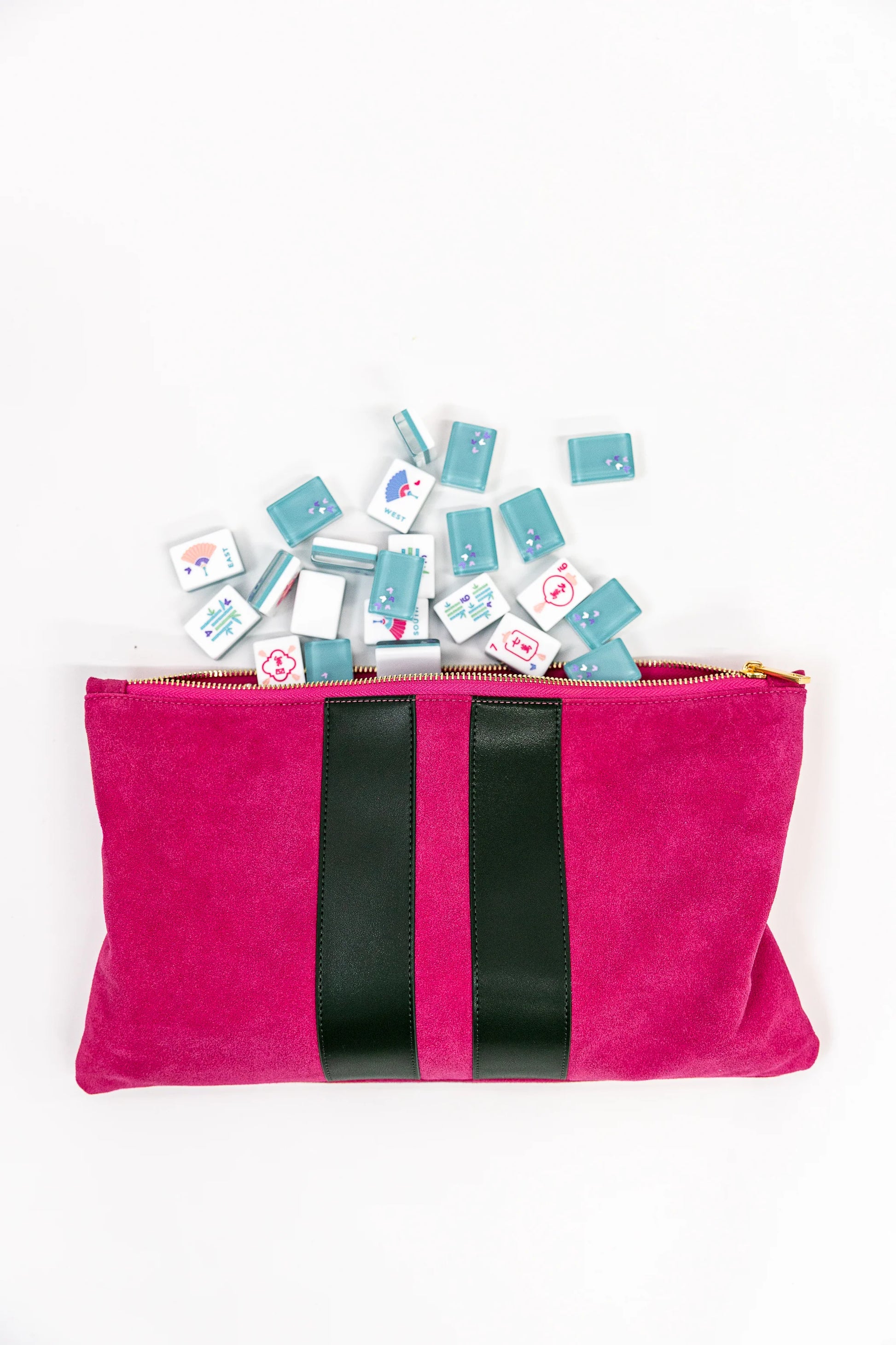 Need to take your tiles on the go? Toss them in this suede tile bag and head out to your next game. Each tile bag has a soft suede exterior with two smooth leather bands and a soft velvet interior.